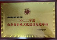 成果名稱:山東省企業(yè)文化建設(shè)先進(jìn)單位 獲獎單位:威海城建集團(tuán)有限公司,頒發(fā)單位:山東省企業(yè)文化學(xué)會