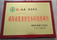 成果名稱:威海市優(yōu)秀住宅小區(qū)培育項(xiàng)目 獲獎單位:城建·新苑陽光 頒發(fā)單位:威海市房地產(chǎn)業(yè)協(xié)會