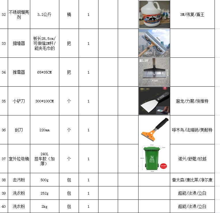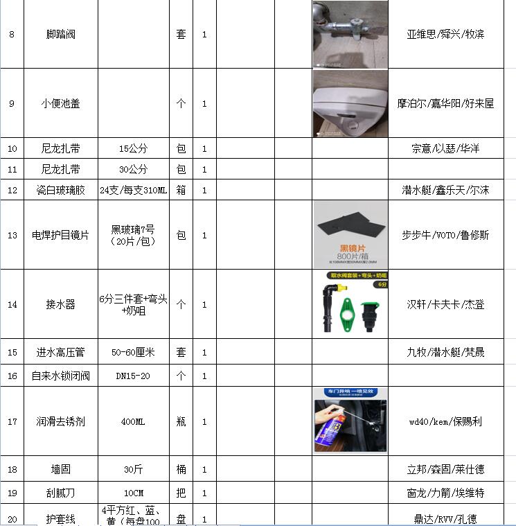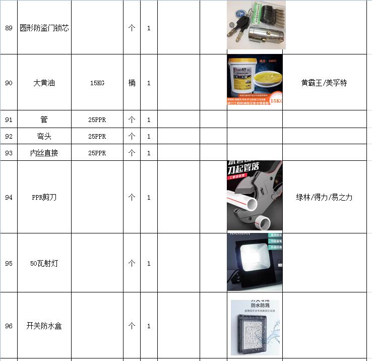 (5)采購內(nèi)容:威海建城物業(yè)物資定點采購,主要包括五金、水暖管件、保潔、維修、綠化所需物資、應(yīng)急維修的其他物資等,采購清單詳見附件。